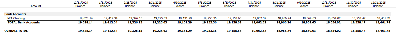 We started 2025 with $19,628.14 in the bank, and our end-of-year balance was US$18,558.47