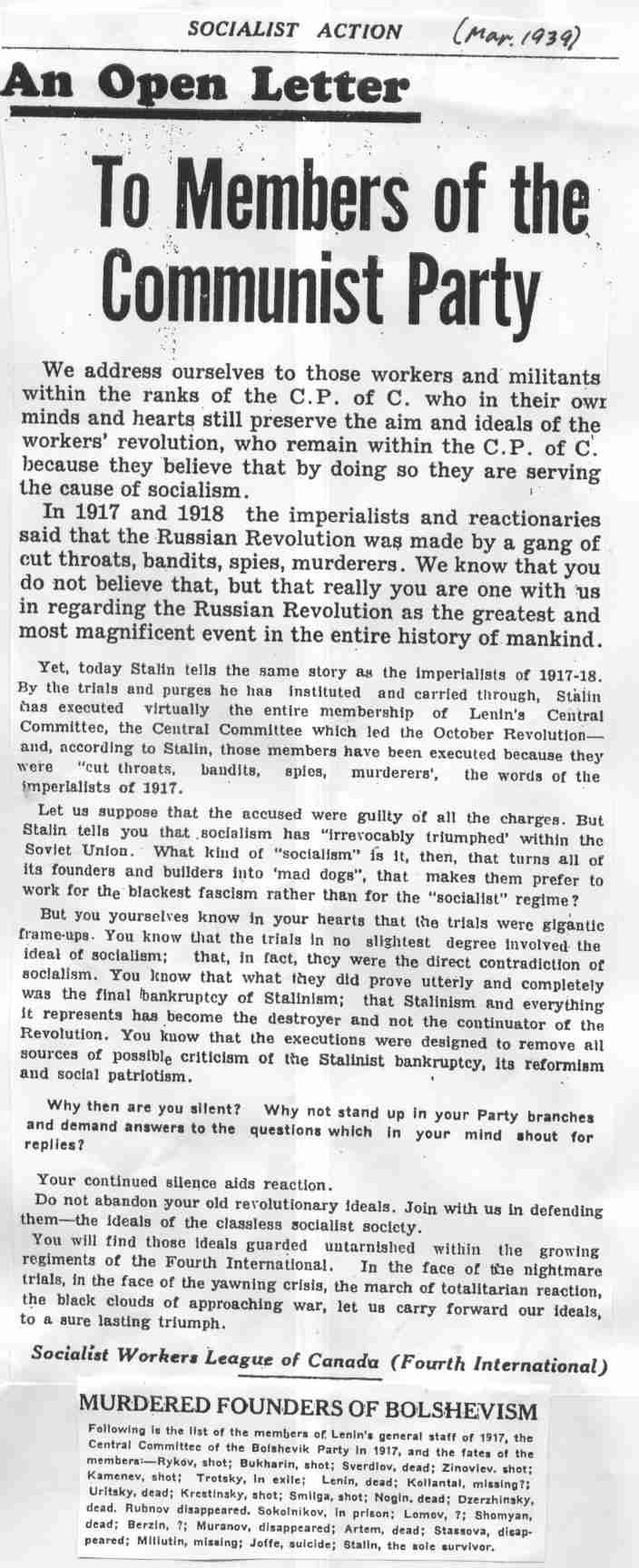 | 1939-03Mar-2 | Open Letter to members of the Communist Party