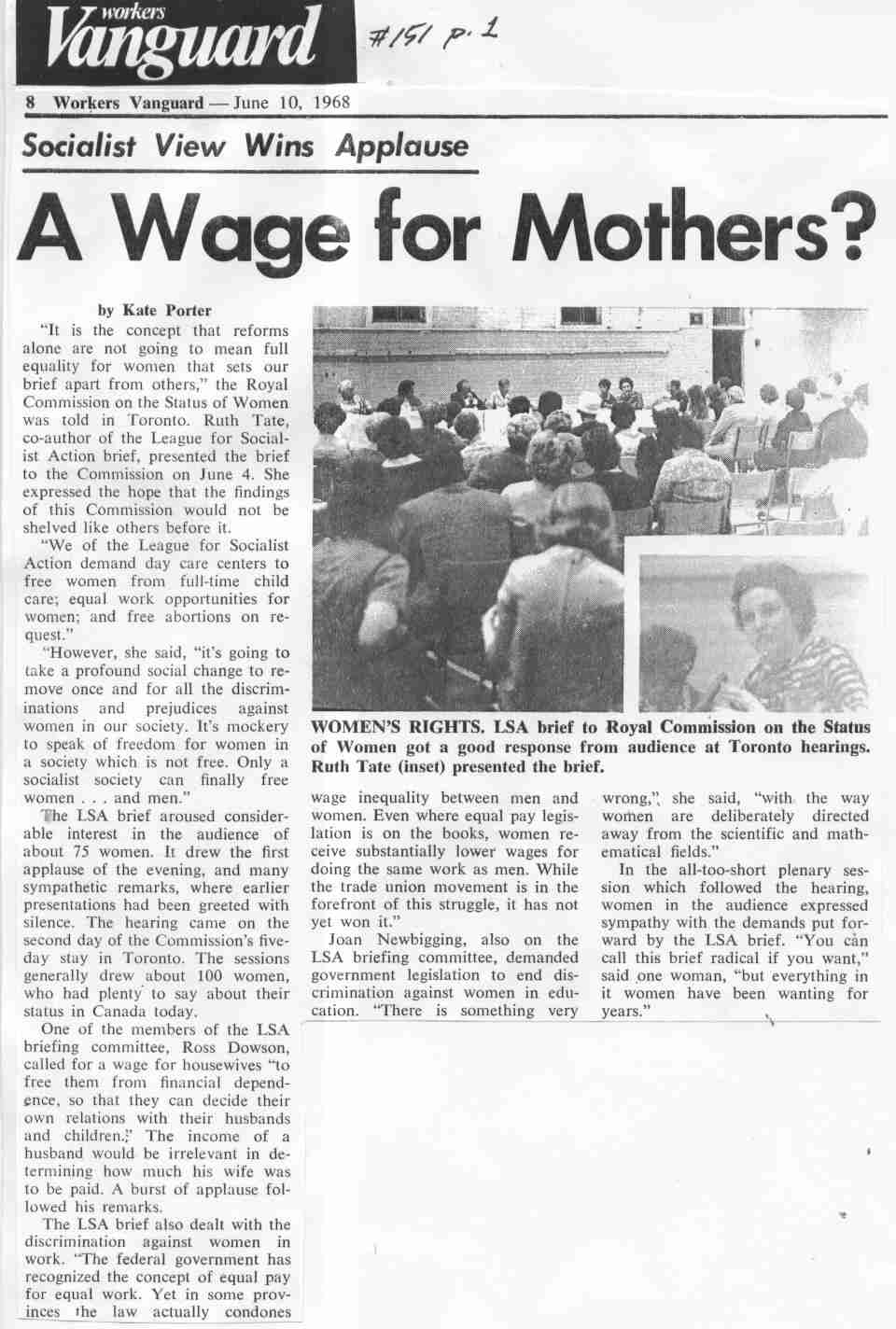 151 A wage for mothers? By Kate Porter (LSA brief to Royal Commission);