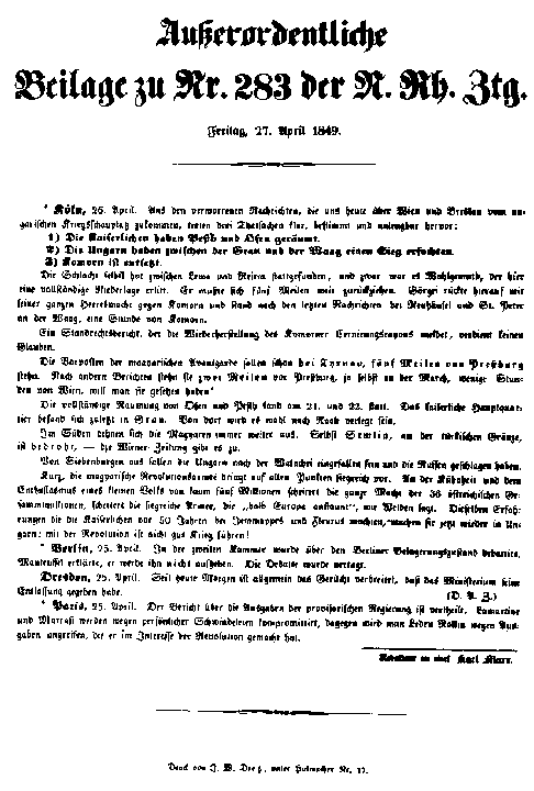 Statement from the editorial board of Neue Rheinische Zeitung on the publication of the first issue, May 31, 1848