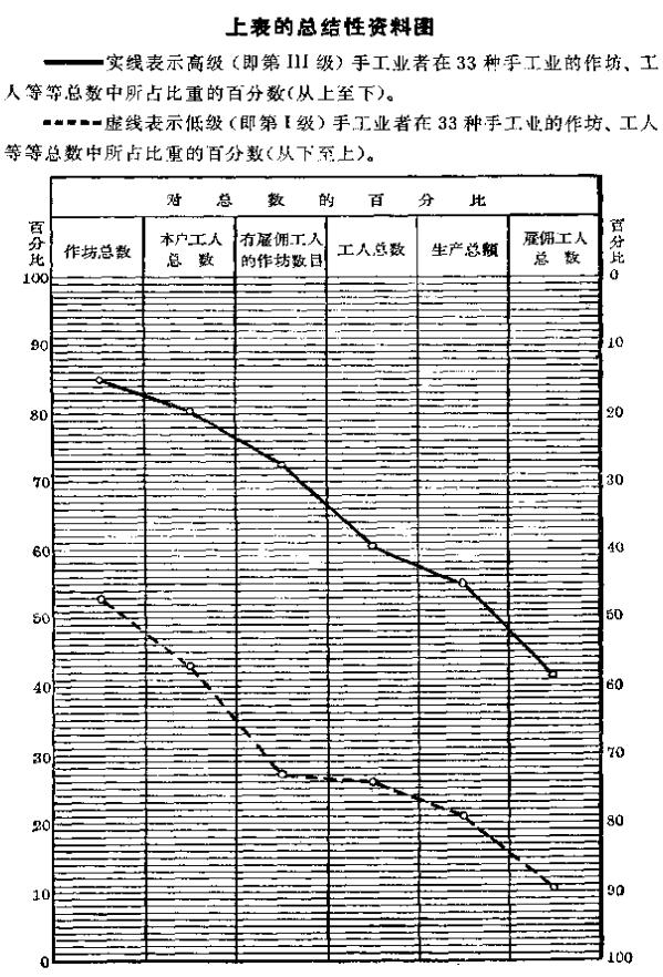彼尔姆省的手工业调查也表明(根据8884个小手艺作坊和手工业作坊开设时间的资料),改革后时代的特点是小手工业发展得特别迅速。稍微仔细地看一看新手工业产生的这种过程是有意义的。弗拉基米尔省的毛织业和半丝织业是在不久以前即1861年产生的。最初,这种行业是外出做零工,以后才在乡村中出现分发线纱的“师傅”。最早的“厂主”之一一度做过麦米买卖,在坦波夫省和萨拉托夫省的“草原”采购麦米。随着铁路的修建,粮价拉平了,粮食生意集中在百万富翁手中,于是我们这位商人决定把自己的资本投入工业织布企业;他进了工厂,熟悉了业务,成了一位“师傅”。[注:《弗拉基米尔省手工业》第3编第242—243页。]由此可见,当地新“手工业”的形成,是由于国内总的经济发展把资本从商业中排挤出去,并把它引入工业。[注:米·伊·杜·-巴拉诺夫斯基在他关于俄国工厂历史命运的研究著作中指出,商业资本是大工业形成的必要的历史条件。见他的《俄国工厂今昔》一书,1898年圣彼得堡版。]我们引以为例的手工业的调查者指出,他记述的情况决不是个别的,因为靠外出做零工为生的农民“是各种手工业的先驱者,他们把自己的技术知识带回本村,带领一批新的劳动力外出,而且以手工业能使小工房主和师傅一本万利的故事来打动富裕农夫。那些把钱存放在钱罐里或做粮食买卖的富裕农夫,听信了这些故事,就经营起工业企业来了”(同上)。弗拉基米尔省亚历山德罗夫县的制鞋业和制毡业在某些地方是这样产生的:细平布小工房或小型分活站的业主们眼看手工织布业衰落下去,就开办了从事其他生产的作坊,他们有时为了熟悉业务和培训子女还雇用师傅。[注:《弗拉基米尔省手工业》第2编第25页和第270页。]当大工业把小资本从一种生产中排挤出去的时候,这种资本就流入其他生产,推动其他生产朝同一方向发展。 改革以后使小手工业在农村中得到发展的一般条件,已由莫斯科省手工业的调查人员作了非常清楚的说明。我们在对花边业的记述中看到:“一方面,这时的农民生活条件大大恶化,另一方面,一部分境况较好的居民的需要却有了显著的增长。”[注:《莫斯科省手工业》第6卷第2编第8页及以下各页。]接着作者根据他所列举地区的资料断言,在多马农民人数和农民牲畜总数增多的时候,无马的和不种地的农民人数也同时增多。这样一来,一方面是需要“外水”、寻找副业工作的人数增多了,另一方面是少数富裕户发了财,有了“积蓄”,有“可能雇用一两个工人或者把工作分配给贫苦农民在家里做”。作者解释说:“当然,我们在这里没有谈到从富裕户中发展起来的那些有名的所谓富农、土豪的情况,而只是考察了农民中最通常的现象。” 总之,地方调查人员指出了农民分化和农民小手工业发展之间的联系。这是完全可以理解的。从第2章叙述的资料中可以得出结论说,种地的农民的分化必然使农民小手工业同时发展起来。随着自然经济的衰落,各种原料加工一个个地变成单独的工业部门;农民资产阶级和农村无产阶级的形成,增加了对农民小手工业产品的需求,同时也为这些手工业提供了自由的劳动力和闲置的货币资金。[注:尼·—逊先生在论述“手工业资本主义化”时所犯的基本理论错误,是他忽略了商品生产和资本主义在其依次各阶段中的那些最初步骤。尼·—逊先生从“人民生产”直接跳到“资本主义”,而后又带着一副可笑的天真神情,惊奇地发现资本主义是没有基础的、人为的等等。] 四 小商品生产者的分化。莫斯科省手工业者的按户调查资料现在我们来考察一下,在工业小商品生产者中间形成的那些社会经济关系是怎样的。确定这些关系的性质这个任务同前面第2章中提出的研究小农的任务是一样的。现在我们应当依据的不是农业经营的规模,而是手工业经营的规模;应当把小手工业者按其生产规模加以分类,考察雇佣劳动在每一类中的作用、技术状况等等。[注:瓦尔泽尔先生在描述切尔尼戈夫省的“手工”工业时,肯定“经济单位是多种多样的”(一方面是收入达500—800卢布的农户,另一方面是“近于赤贫的”农户),并且作了这样的评论:“在这种条件下,对农户进行按户登记,并把它们及其全部经营设备划分成一定数量的平均农户,这是提供手工业者经济生活全貌的唯一办法。其余的一切,或者是偶然印象构成的幻想,或者是根据各种平均数字作出的不切实际的算术计算……”(《俄国手工工业调查委员会的报告》第5编第354页)]为了进行这种分析,必须有手工业者的按户调查资料,我们现在掌握的是莫斯科省手工业者的按户调查资料。[注:《莫斯科省统计资料汇编》第6卷和第7卷,《莫斯科省手工业》和安·伊萨耶夫《莫斯科省手工业》1876—1877年莫斯科版,共2卷。在《弗拉基米尔省手工业》中,也刊载了有关少数几种手工业的这样的资料。不言而喻,我们在本章只考察这样的手工业,在这些手工业中,小商品生产者为市场工作,而不是为包买主工作,至少在大多数情况下是如此。为包买主工作是一种更复杂的现象,我们在下面将专门考察这种现象。为包买主工作的手工业者的按户调查资料,对判断小商品生产者之间的关系并不适用。]调查人员对许多手工业都列举了有关每一个手工业者的生产、有时还包括其农业的确切统计资料(作坊建立