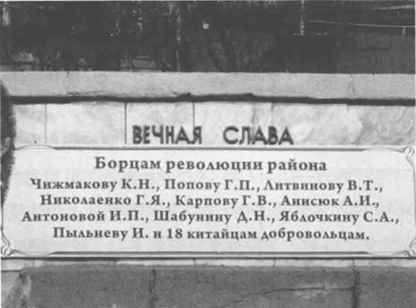 根据区兵役局2009年资料记载,该墓碑(334号)为1918年至1922年苏联国内战争时期的纪念碑,共掩埋19人,其中16人为中国烈士。
