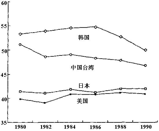 [5] 直到80年代中期,体力劳动与非体力劳动之间的工资差距在韩国是很大的,不过此后开始很快缩小。因此,在90年代中期,韩国的体力劳动与非体力劳动工资差距比日本和中国台湾小了(参见Lee Kyong-hee 1994)