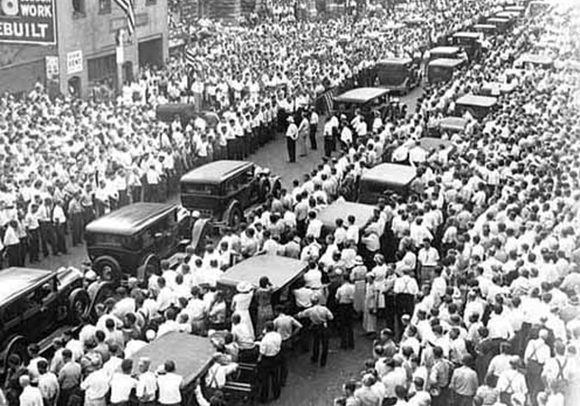 ![]() 纠察队员与警察战斗。 ![]() 1933年3月,农民在圣保罗市的明尼苏达州议会大楼前游行,要求政府提供援助,在1934年罢工中,农民成了工人的盟友。 ![]() 1934年4月6日,由于联邦政府提供的“救济”过少,甚至达不到贫困线,一万名失业工人在明尼阿波利斯游行抗议。警察随后用催泪弹驱散了游行队伍。 ![]() 1932年7月,15000名失业的一战退伍军人在华盛顿国会大厦附近扎营,要求获得他们应得的退役金。道格拉斯·麦克阿瑟将军出动骑兵和坦克镇压,导致两人死亡,多人受伤。 ![]() 1932年3月,3000名失业工人在福特汽车公司红河工厂举行游行,遭到警察镇压,导致5人死亡,60人受伤。 ![]() 1932年2月,日帝侵略上海,残暴的日寇焚毁了工人区,而富人居住的租界却被美军保卫着,毫发未损。奥马哈的报纸上刊登的这类照片,使法雷尔·多布斯理解了阶级之间是不平等的,明白了世界资本主义体系的野蛮是令人无法忍受的。 ![]() ![]() 以上两张图是“治安队狼狈逃窜之战”(Battle of Deputies Run):1934年5月21—22日,几百名工人在明尼阿波利斯市场区包围了警察和治安队(公民联盟收买的打手),把他们打得屁滚尿流。 ![]() “血腥星期五”惨案:1934年7月20日,警察向手无寸铁的纠察队员开枪,导致67名纠察队员和路人受伤,其中两名罢工工人因伤重身亡(亨利·内斯于7月22日逝世,约翰·贝洛于8月1日逝世)。 ![]() 1934年7月24日,四万多人为亨利·内斯送葬。 ![]() 为了纪念亨利·内斯,同志们在574分会罢工总部入口上挂上了花圈和牌匾,牌匾上刻着他的遗言:“告诉小伙子们,别让我失望。” ![]() 奥尔森州长(左)和联邦调解员弗兰西斯·哈斯神父(中)与尤金·邓尼根(右)。他们相互勾结,想把“公平”的罢工协议推销给工人。 ![]() 7月26日,奥尔森出动四千国民警卫队,在明尼阿波利斯实施戒严。图为奥尔森的军队保护工贼卸货。 ![]() 8月1日,国民警卫队士兵端着上了刺刀的步枪,查抄了劳联总部。 ![]() 上图:8月1日,国民警卫队查封了574分会罢工总部,抓走了雷·邓恩;下图:格兰特·邓恩(左一)与574分会律师阿尔伯特·戈尔德曼(右一)迎接比尔·布朗(戴白帽者)、迈尔斯·邓恩和雷·邓恩出狱。 ![]() 纠察队员检查卡车司机是否持有工会发放的通行证。 ![]() 8月1日,就在国民警卫队查封工会总部、逮捕罢工领袖之后,仅仅过了几个钟头,国民警卫队就接到了工贼打来的500多个求救电话。图为被掀翻的工贼卡车。 ![]() 纠察队总调度员凯利·波斯特尔。 ![]() 罢工期间,为了团结农民,574分会特地租了一个停车场,让农民在这个停车场里卖菜,而且不收摊位费。 ![]() 罢工工人在工会食堂里打饭。这个食堂是由妇女后援会运营的。 ![]() 上图:574分会的罢工领袖,左起:比尔·布朗、法雷尔·多布斯和卡尔·斯科格伦德;中图:邓恩三兄弟,左起:雷、格兰特和迈尔斯;下图:马克斯·沙赫特曼(左)与詹姆斯·坎农(右)。 ![]() 上图:1934年纺织工人总罢工期间的乔治亚州格林斯伯罗市纺织工人纠察队,在大西洋沿岸有四十万人参加了这次罢工。罗斯福派出四万军队镇压罢工,导致16人死亡,数百人受伤。 下图:1936年,纽约哈莱姆区的工人为了改善生活条件而举行罢工。 ![]() 左图:西海岸码头装卸工人坚持罢工三个月,迫使资方承认工会、增加工资并减少劳动时间;中图:1934年8月25日的《战士报》头版刊登了明尼阿波利斯卡车司机罢工胜利的消息;右图:俄亥俄州托莱多市的汽车配件工人举行罢工,战胜了老板。在这次罢工期间,发生了长达六天的巷战,史称切斯特纳特山之战(Battle of Chestnut),这张照片就是当时拍摄的。 ![]() 1936年12月,密歇根州弗林特市的通用汽车工人举行静坐罢工,次年2月,罢工赢得胜利。 ![]() 1937年元旦,罢工中的底特律汽车工人举行示威游行。 ![]() 密歇根工人抗议共和钢铁公司枪杀芝加哥工人。 ![]() 卡车司机总工会内布拉斯加州奥马哈市第554分会的领导人首次进行纠察。左起:迪克·索登贝格(Dick Sodenberg)、路易斯·米勒(Louis Miller)与马尔科姆·拉夫(Malcolm Love)。 ![]() ![]() 明尼阿波利斯—圣保罗地区的工会会员成立了工会自卫团(Union Defense Guard),抵挡老板豢养的法西斯分子和其它反动派。 ![]() 工会自卫团总团长、544分会会员雷·雷因波尔特。 ![]() 1939年,明尼阿波利斯公共事业振兴署下水道工程项目工人举行罢工。 ![]() 1939年8月,蒙冤入狱长达23年之久的加利福尼亚工会组织者汤姆·穆尼(Tom Mooney)访问明尼阿波利斯,在工人大会上发表讲话。 ![]() 左图:1937年12月,由于日军轰炸了中国境内的美国炮艇,美国国内掀起了出兵的喧嚣声,在这一片喧嚣声中,明尼阿波利斯卡车司机联合委员会的周报《西北组织者》指出,美国大公司正在残酷剥削中国劳动者。“他们说的‘我们’到底是谁?凭什么叫我们出钱出人去保护身在中国的‘他们’?让美军全部撤离中国!”;右图:1940年1月,多布斯辞去国际卡车司机兄弟会总组织者的职务,前往纽约担任社会主义工人党的工人与组织书记途中,前往墨西哥拜访了托洛茨基同志。 ![]() 1941年,罗斯福政府为了进行战争动员、镇压阶级斗争,动用臭名昭著的《史密斯法案》(Smith Act),起诉了544分会和社会主义工人党的18位领导人。下图:1943年12月,多布斯(中间者)和另外17人被指控犯有“煽动暴乱”的罪名,这张照片是在他们被押往联邦监狱的途中拍摄的。多布斯右边是党的领袖卡尔·斯科格伦德、阿尔