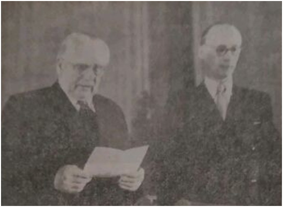 1949年10月11日,威廉·皮克当选总统后,在临时人民议会和临时州联议会的联席会议中依照宪法规定宣誓。