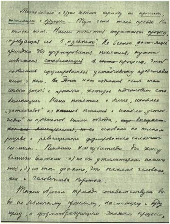 米哈伊洛夫斯基[5]和另外一些人从今-昔-未[6]演绎出三段式来。纵然有一丝真理的身影,然而也仅是一道身影。我们的观念化行动反映了一种将它们“事物化”的生产过程,并非每个当下都宜于观念塑形;于其构式中生产一种恒久现象必须有一种确定的稳定性。因此这种意识活动是与提供稳定的往昔的一种决裂。我们关于地球的观念是日常生活中“最稳定”的对象,在我们的观念中“最稳定”,建基于太阳系革命性生成过程中的总体决裂。此观念很保守。这类保守主义的问题在于:a)基于其功利目的,b)基于单个主体的记忆这一事实,同人类的记忆一样,流光瞬息。