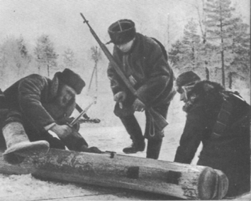 del libro segundo de Alexéi Fiódorov. Los guerrilleros destruían constantemente los medios de comunicación enemiga: tumbaban postes telegráficos, cortaban cables...