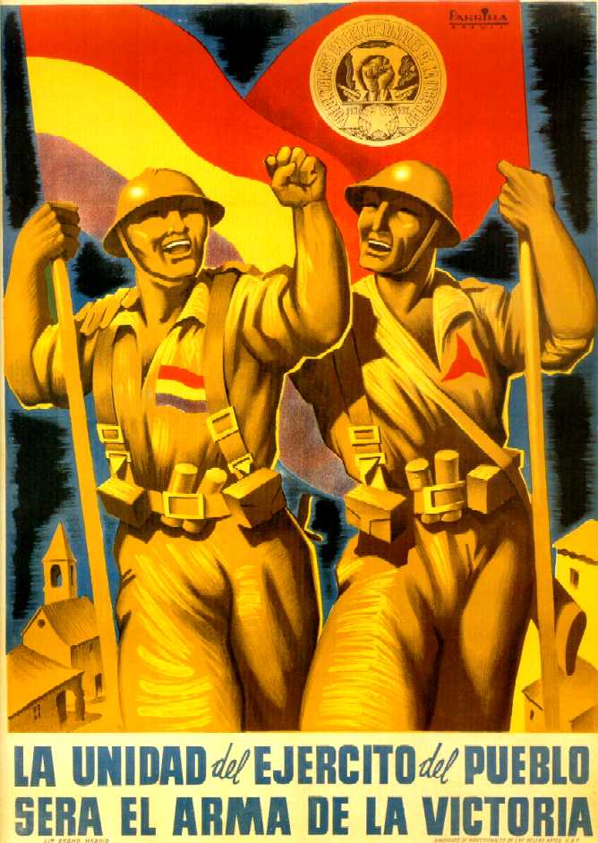 La fuite massive des paysans devant chaque attaque nationaliste montre, en tout cas que les chefs militaires ont atteint leur but, et que leurs troupes inspirent une profonde terreur. Une dépêche de Delaprée décrit cet « immense exode » des paysans d'Estremadure, « poussant devant eux leurs cochons et leurs chèvres, les femmes traînant leurs marmots » [26]. Dans cette foule atterrée pourtant, les hommes, ces « paysans à figure tannée à courte blouse et à grand chapeau », réclament immédiatement le fusil qu'ils ne lâcheront plus, ni pour manger, ni pour dormir, et retournent se battre. Car la terreur est une arme à double tranchant : ils sont des dizaines de milliers à fuir sur les routes, mais autant d'ouvriers, de paysans, d'intellectuels qui empoignent une arme pour se battre, n'importe comment, mais se battre. Toutes les préoccupations et les aspirations antérieures semblent s'effacer devant cette volonté désespérée de résister, de barrer le passage, de vaincre. A ce qui leur paraît une machine de guerre supérieurement entraînée et équipée, ils sont maintenant des milliers qui sont prêts à tout pour opposer une autre machine, non moins efficace : les mots d'ordre de « discipline », de « commandement unique » rencontrent de l'écho. Il faut, à tout prix, se battre et tenir. Il faut, d'abord, et pour ne pas périr, mettre fin au chaos né de la multiplicité des autorités et des conflits de pouvoirs instaurer la discipline, bâtir un commandement, adapter les milices à leur tâche vitale : la guerre.