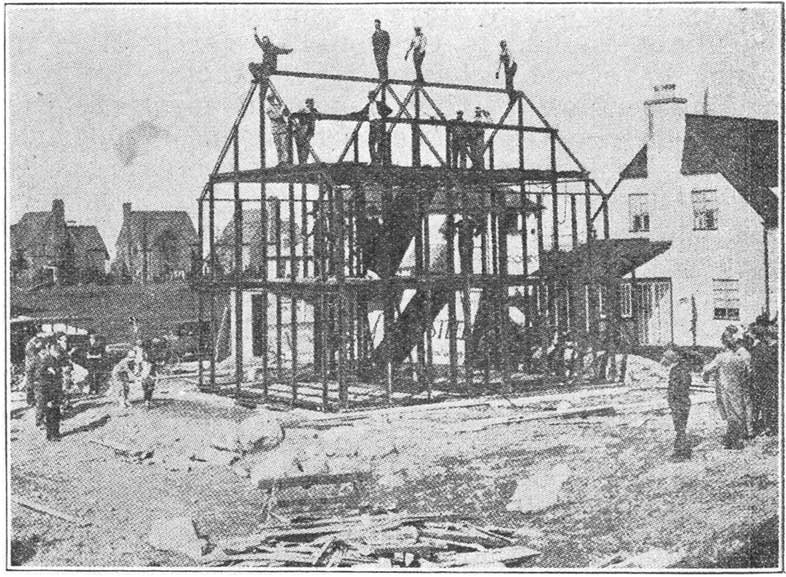 Several thousand iron buildings have already been constructed in England and the United States. In this country many of them have been erected in California and New York. The first one to be built in this country was in Toledo, Ohio, in 1924, a five-room modern bungalow. It was steel throughout and cost $4,085. At that time no standards were in the market. The steel had to be cut and holes made on the job. Today we have standards and they are being molded in the steel mills, so all the labor that is needed is bolting them together, at wages for the workers ranging from fifty to sixty cents an hour.