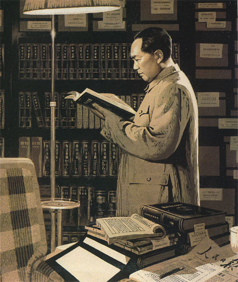 “Chairman Mao in his Study” (woodcut by Chang-Chiang) date unknown (82 KB)