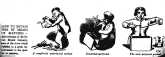 (first sentences illegible)..If the first Five-Year Plan turned out a splendid success, if collectivization has won glorious victories, if industrial production is growing at an unprecedented rate, the ruthless and at times almost savage way in which the Bolsheviks criticize themselves had a great deal to do with it. To take a nation of backward individualist peasants, and mould them within a short time into efficient, cultured, and responsible industrial workers and collective farmers is a collossal task. In this the Soviet writers and artists have played a magnificent part. Cartoons are proving a most powerful weapon in satirizing foibles and criticizing failures. Small wonder there has been an efflorescence of the art of cartooning in the Soviet Union. The six cartoons on these pages have been culled out from recent Societ publications--the Crocodile and the Projector. (note: one cartoon ommitted, distorted on the center crease.)