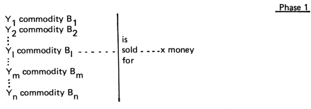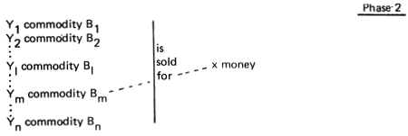 The result being YI commodity BI - x money - Ym commodity Bm (for short C - M - C) where money serves as a means of circulation.