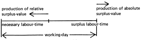 Absolute surplus-value is produced by a prolongation of the working-day, thereby increasing the surplus labour-time (cf. 49).