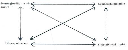 Jag har ovan gjort en kortfattad karakteristik av de plan som ingår i modellen samt gett dem ett ”nyckelord” för att beskriva planens särpräglade karaktär under det kapitalistiska skedet. Sätter vi in dessa nyckelord i modellen får vi följande bild. (se fig. 3)